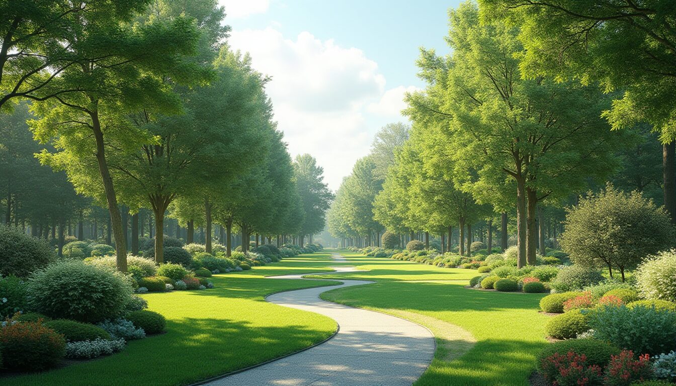 - Разнообразие насаждений — освежающие стрижки кустарников и выбор ярких цветов способствуют живому и динамичному пространству.