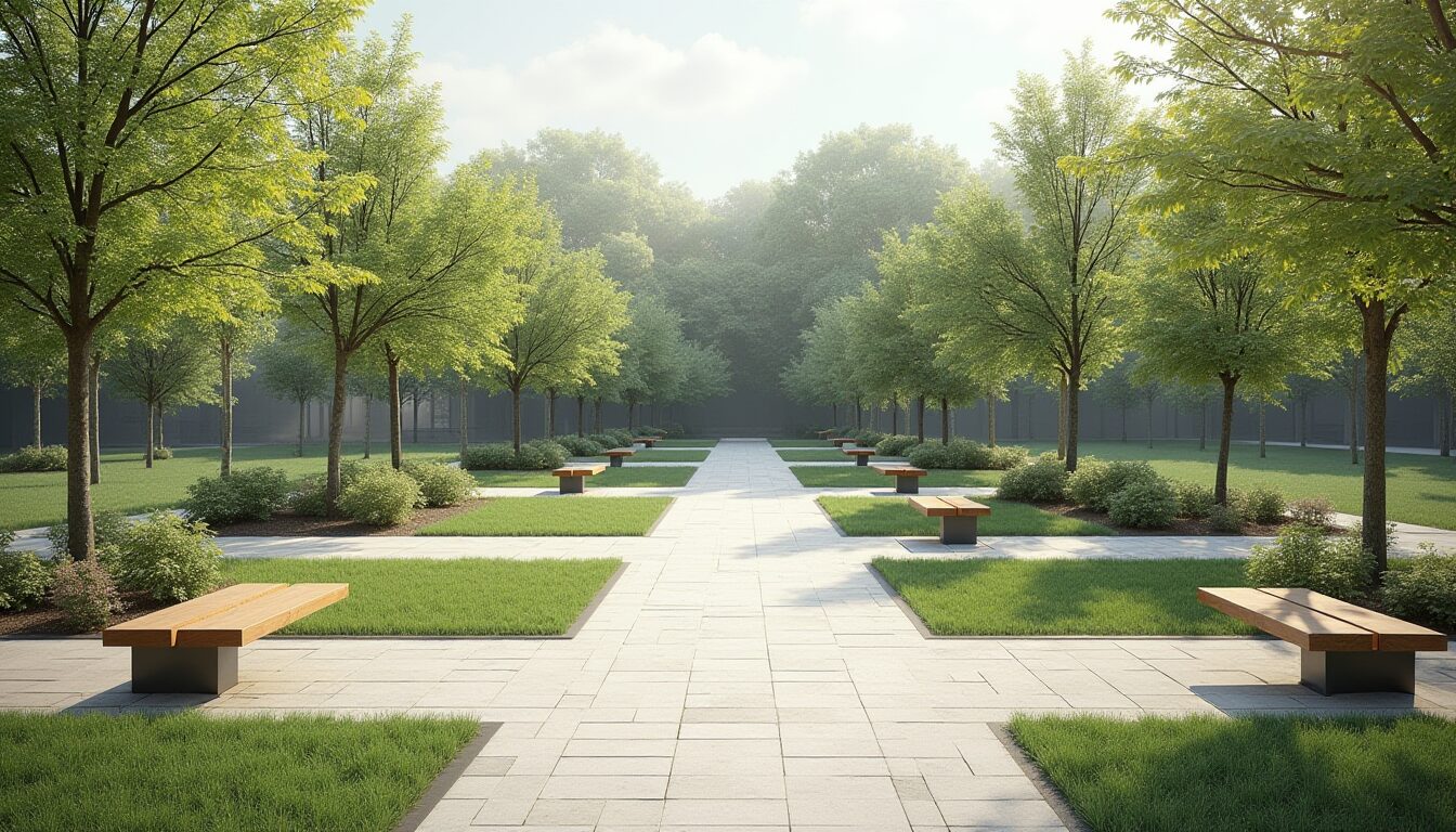 - Элементы благоустройства — создание удобных троп и мощение мест для прогулок обеспечивают удобство передвижения. Также важны площадки для отдыха с озеленением, лавочками и беседками.