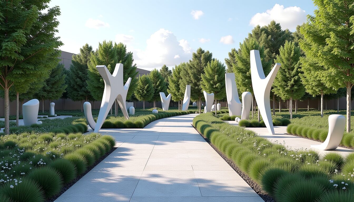 - Креативные элементы — ландшафтные арт-объекты, уличные разные скульптуры и малые архитектурные часто присутствуют в модерне, добавляя экспертности подхода.