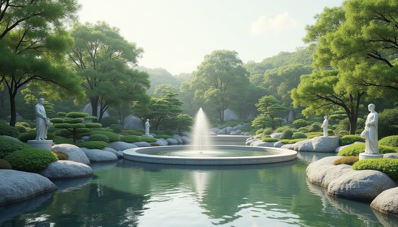 - Вода как элемент дизайна — природные водоемы, такие как пруды или ручьи, часто становятся важными составляющими. Они не только украшают, но и служат местами для медитации и размышлений.