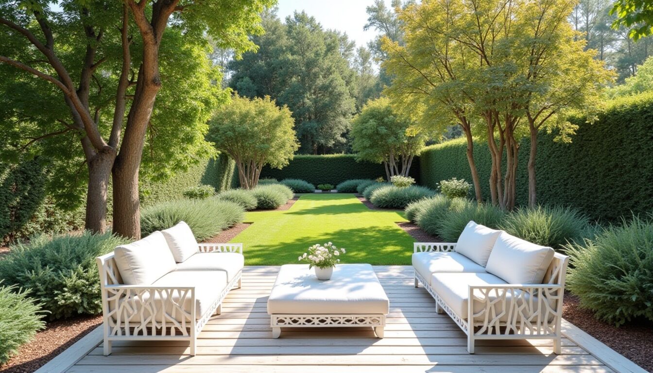- Дерево — деревянные конструкции, такие как беседки и мебель, добавляют теплоту и уют.