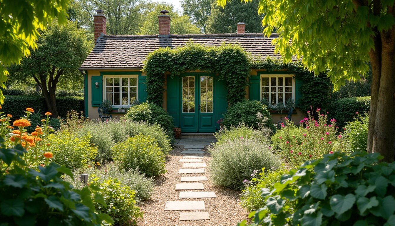 Правильная цветовая гамма в стиле прованс создает естественный фон для растений в саду и декоративных элементов, подчеркивая красоту природы и создавая гармоничную атмосферу.