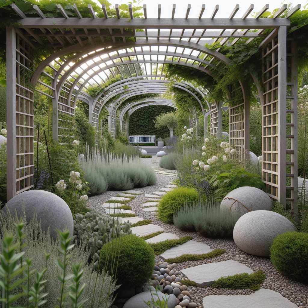 - Светлые цвета — белый, серый и натуральные оттенки помогают создать лёгкую и уютную атмосферу сада.
