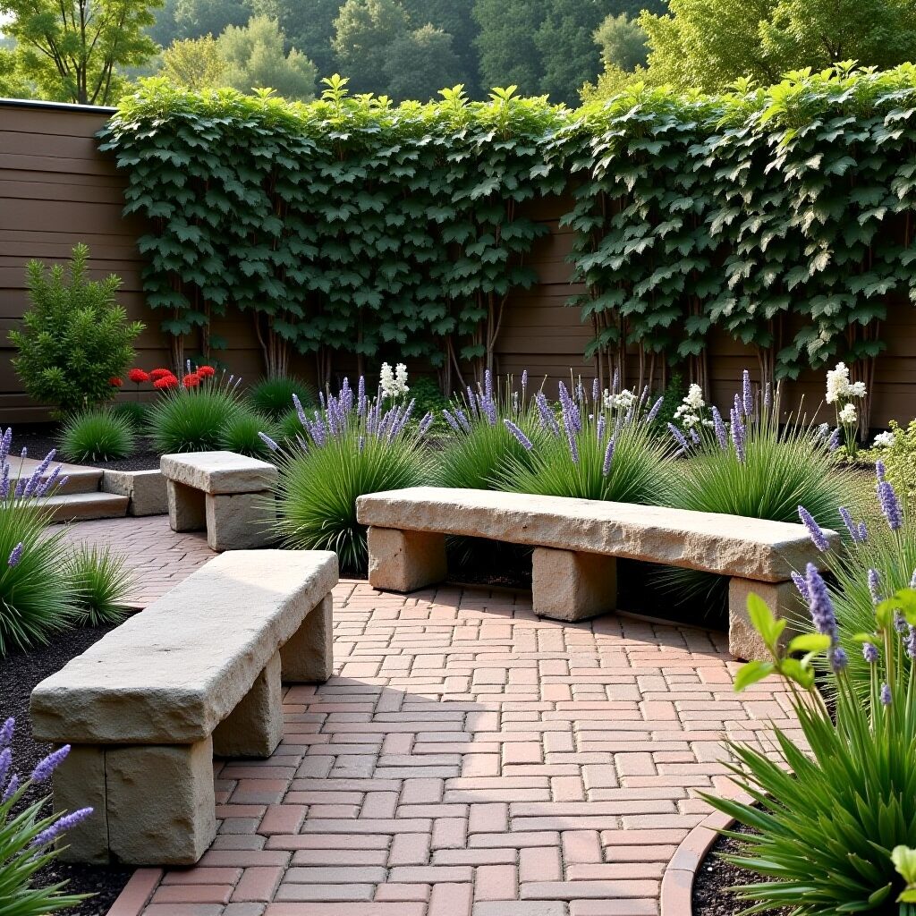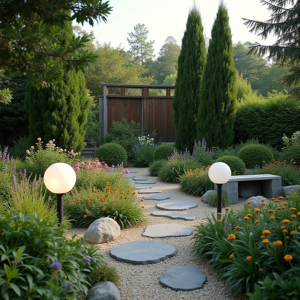 - Архитектурные элементы — использование камня в заборе или в оформлении водоёмов делает участок более завершённым.