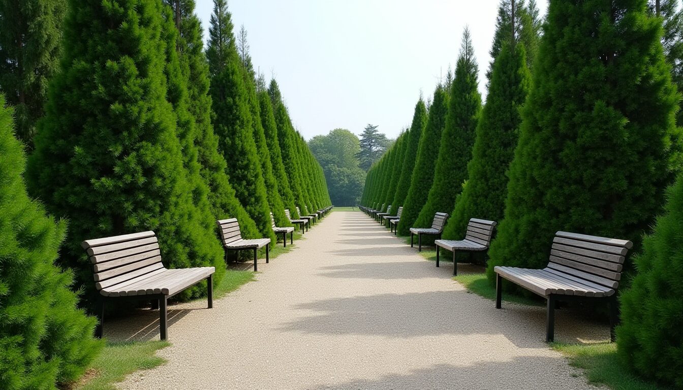 - Высокие деревья – туя, ель и другие высокие деревья создают вертикальные акценты.