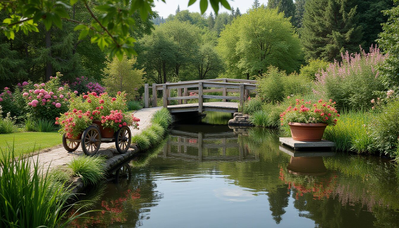 Ландшафтный дизайн в этом стиле предусматривает использование определенных предметов. При этом дизайнер ландшафта придерживается нескольких принципов: