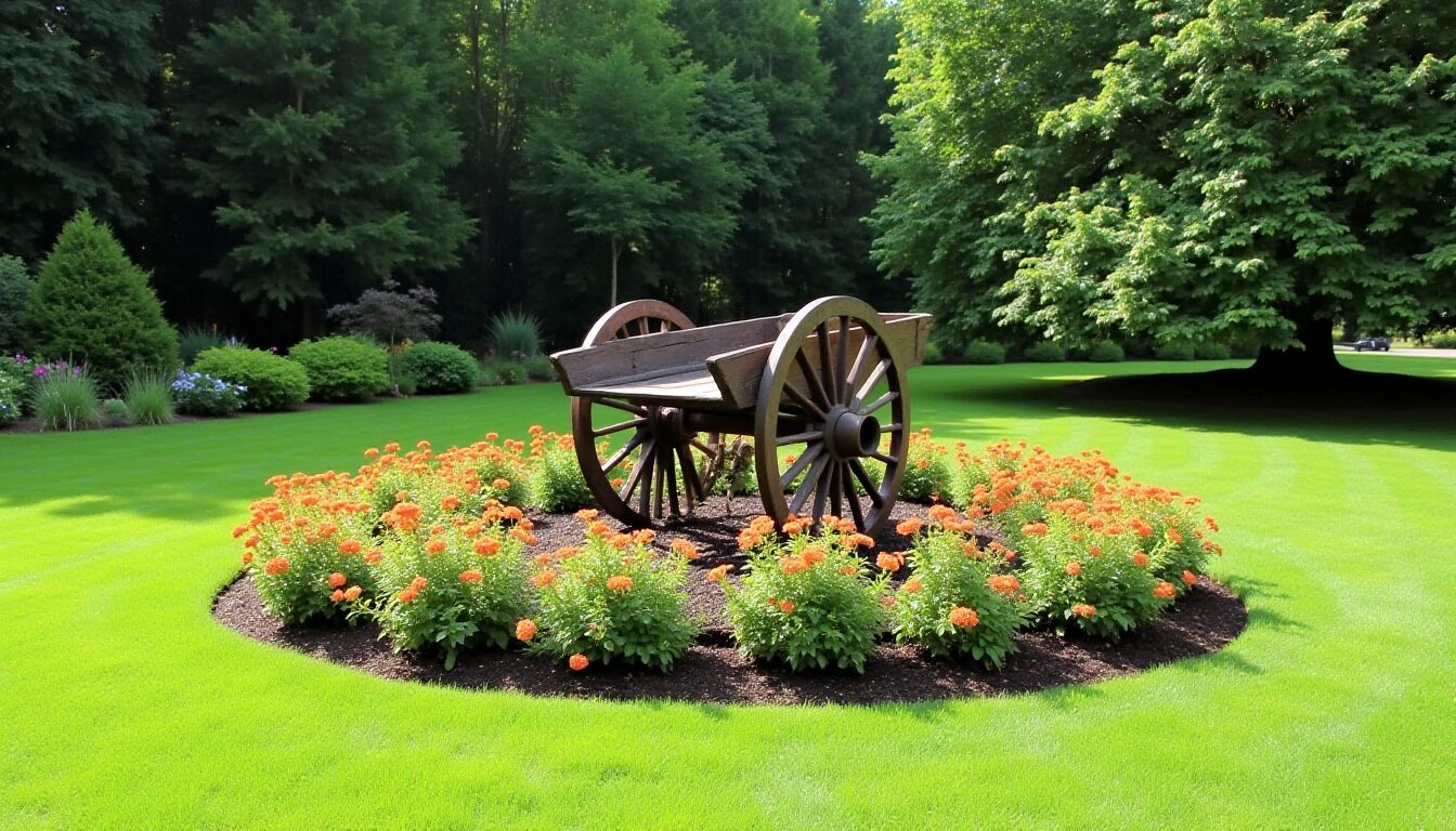 Цветник и грядки часто украшаются горшками. Устанавливаются телеги, которые станут место посадки для сирени и других. Ягодные кустарники подходят для планирования территории, но они, естественно, приносят урожай.