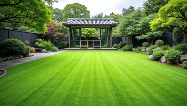 - Особое внимание стоит уделить выбору газонной травы. Для минимизации ухода лучше выбрать спортивный газон, он густой, растет медленнее, красиво смотрится.