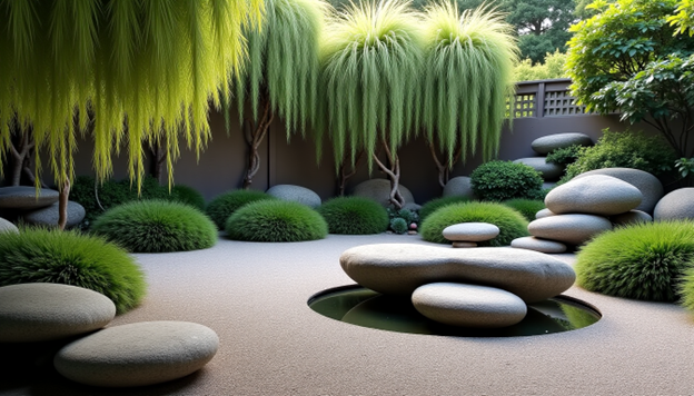 - Использование натуральных материалов. Камень, дерево, гравий и вода являются основными материалами, которые помогают создать естественную и гармоничную среду.