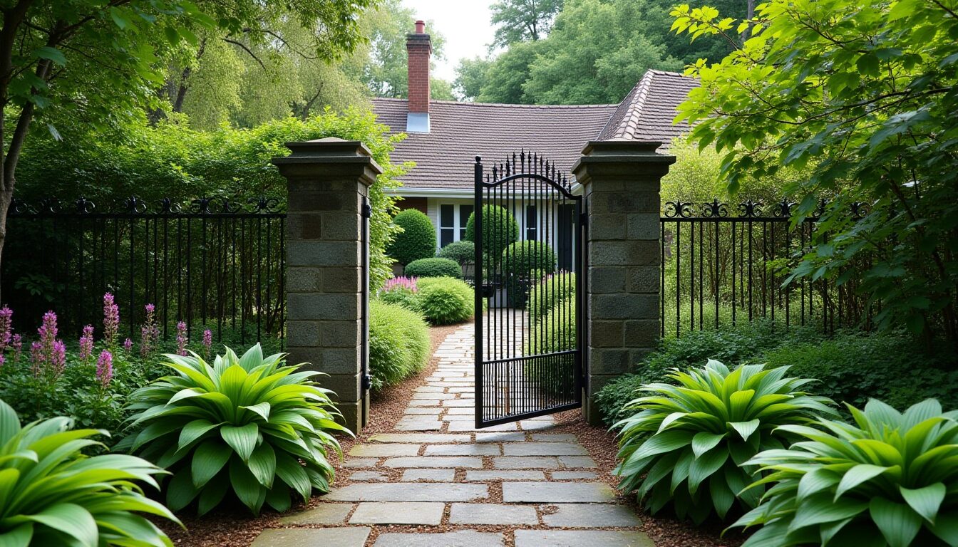 - Если калитка расположена слева или справа от дома, то у забора следует разбить большую клумбу с невысокими цветами.